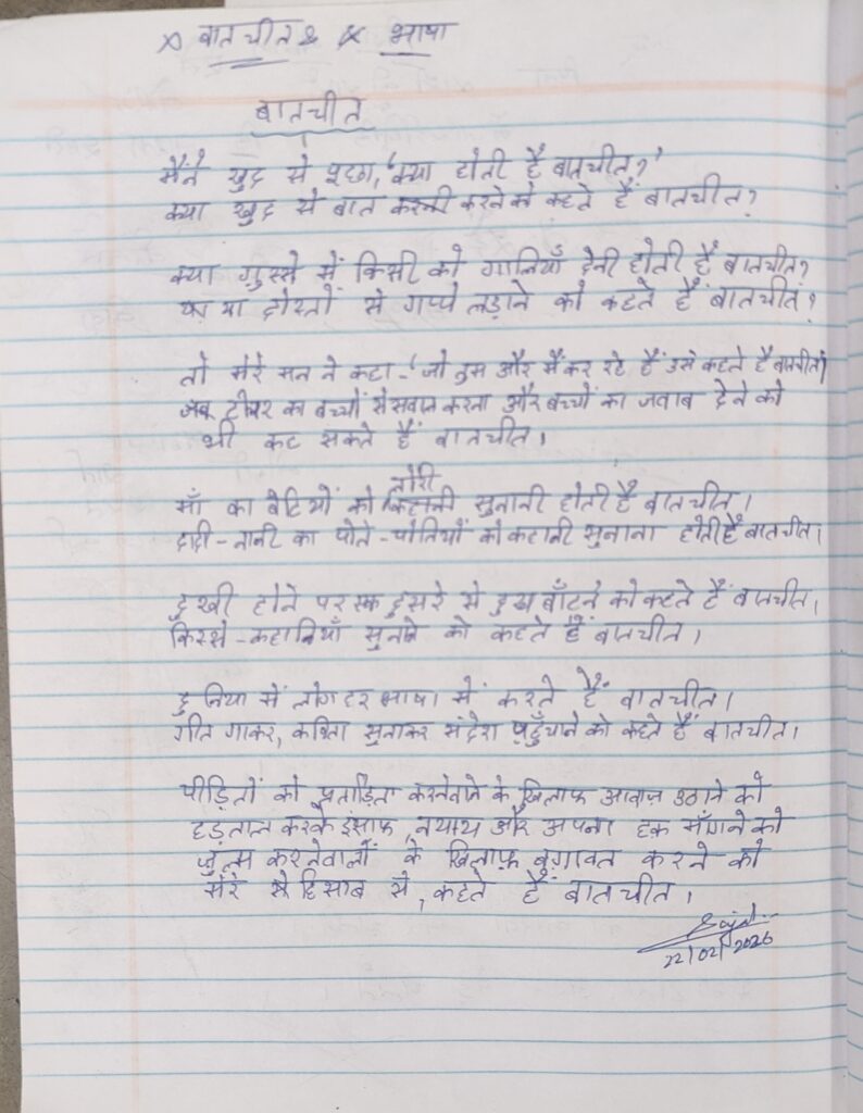 टीचर का बच्चों से सवाल करना और बच्चों का जवाब देने को भी कह सकते हैं बातचीत।