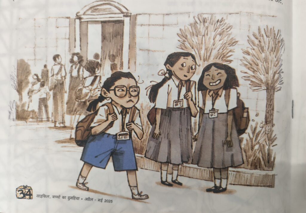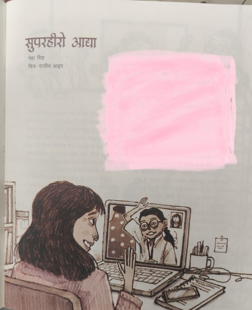बहरहाल इस भूमिका के आगे उस कहानी का ज़िक्र करने जा रही हूँ जो बच्चों को उनके जीवन के साथ जोड़कर देखने,अनुभव करने और आगे देखे जाने के रास्ते में ले जाती है ये कहानी प्रकाशित हुई है ‘सुपरहीरो आद्या’ साइकिल पत्रिका। यह कहानी एक ऐसी बच्ची के बारे में है जो सिंगापुर में पढ़ती है और स्कूल में होने वाले भेदभाव को लेकर स्कूल में टीचर और प्रिंसिपल के सामने सवाल उठाती है जिसके जवाब में उसे प्रिंसिपल कहती हैं कि तुम्हें एक सप्ताह दिया जाता है जिसमें आद्या को पूरे स्कूल में सभी कक्षाओं को जेंडर को लेकर संवेदनशील बनाने का टास्क मिलता है जिसे उसे बेहतर तरीके से अंजाम पहुंचाना होता है। इसके लिए वो बच्ची आद्या अपनी मां की दोस्त जो भारत में रहती हैं उनसे लगातार बात करती है और सलाह करके अपना काम करती है। आद्या पूरे स्कूल में जेंडर को लेकर मां की दोस्त का ऑनलाइन सेशन कराती है जिससे पूरा स्कूल आद्या के जैसे सवालों के जवाब प्राप्त करता है। बच्चों के लिए जेंडर संवेदना से भरी इस कहानी को पढ़कर लगा कि किस तरह से यह कहानी पूरी दुनिया के सवाल को सम्बोधित करती है। बचपन से ही जाने कितने सूक्ष्म भेदभाव से गुज़रती बच्चियां स्वयं के लिए स्पेस बनाने के लिए कितना संघर्ष करती होंगी निश्चित ही इसमें बच्चियों के साथ हर जेंडर के लोग शामिल है जो भेदभाव का शिकार होते हैं। कहानी में घटित घटनाएं और संवाद शानदार हैं कि लगता है आद्या के अनुभव तो हमारे अपने अनुभव हैं। आइए अब आप बच्चों के अनुभव को पढ़िए –